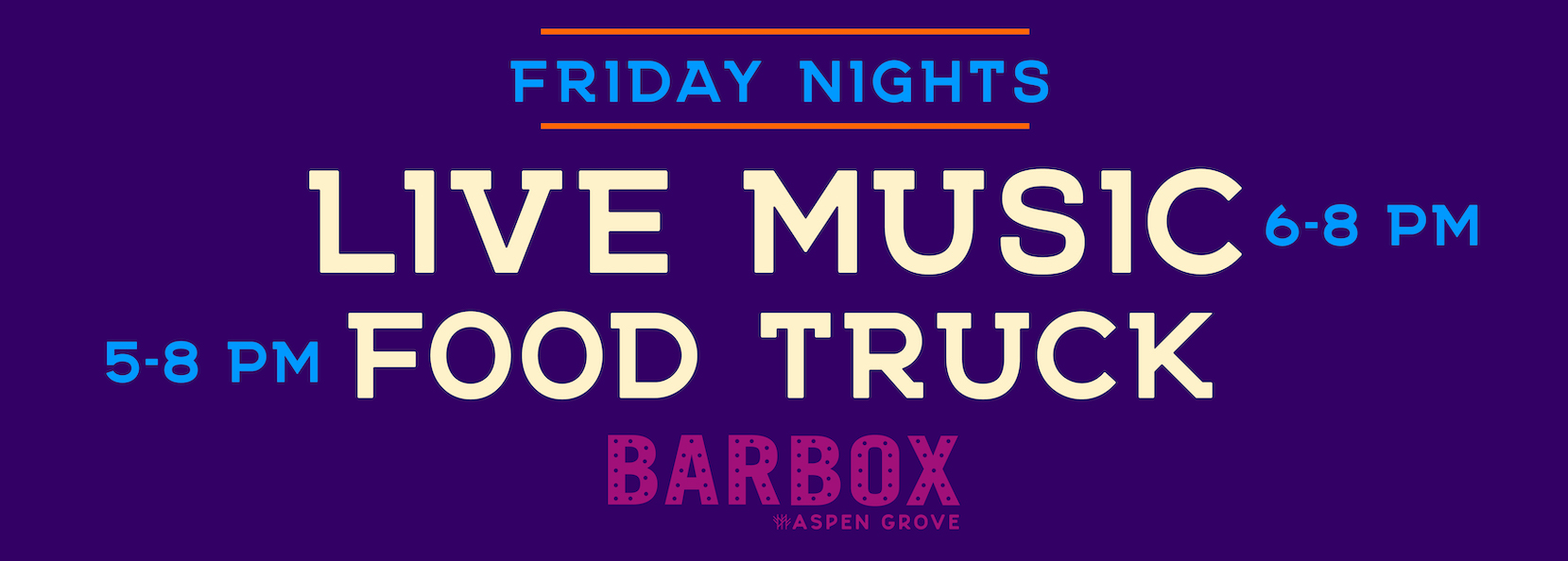 Every Friday night, the lawn comes alive with live music, local food trucks, and your favorite drinks at BARBOX, the outdoor container bar located next to Alamo Drafthouse Cinema Aspen Grove.