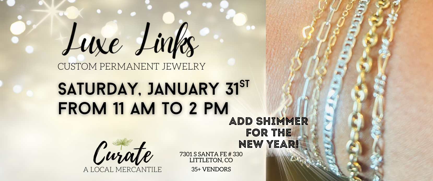 Come to Curate Mercantile to shop for your own custom permanent jewelry experience with Luxe Links!