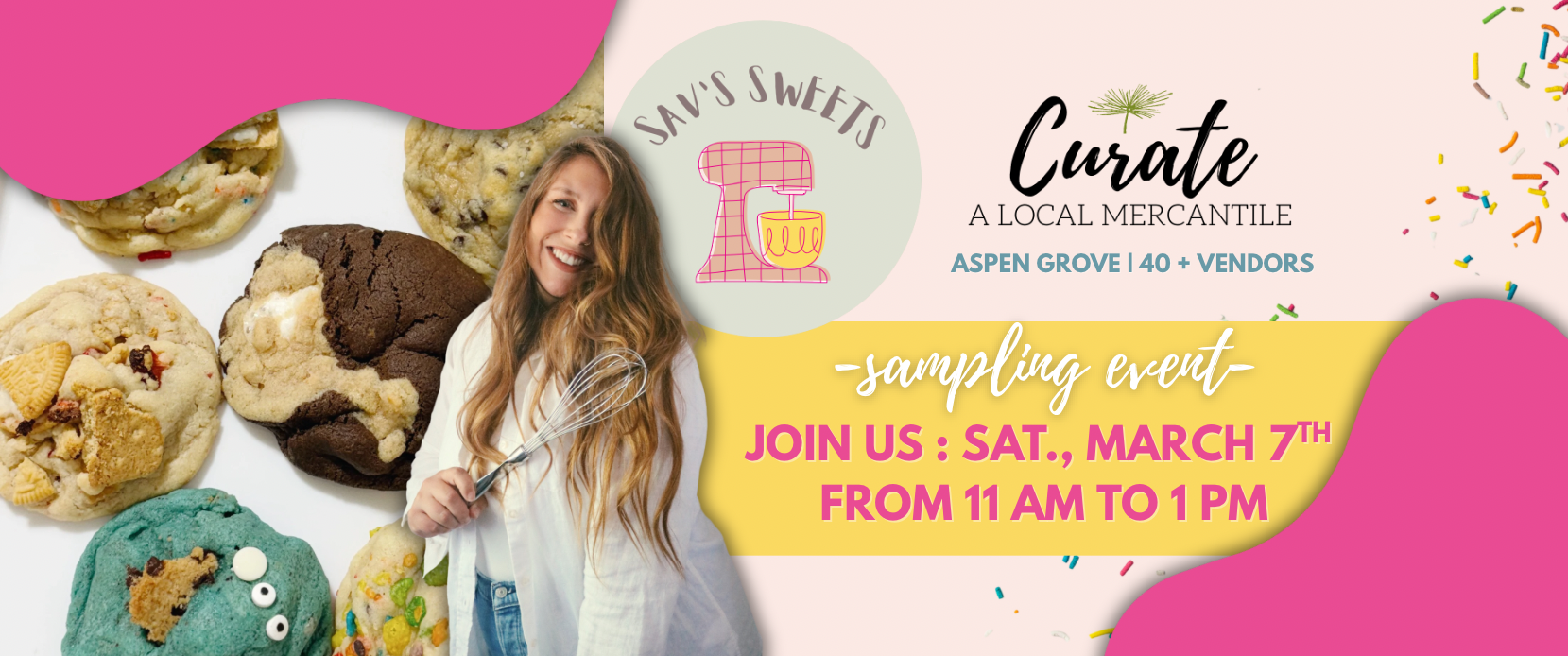 Sav’s Sweets is popping up on Saturday, March 7th, from 11 AM – 1 PM at our Aspen Grove location with a special cookie & macaron pop-up — and yes, there will be samples!