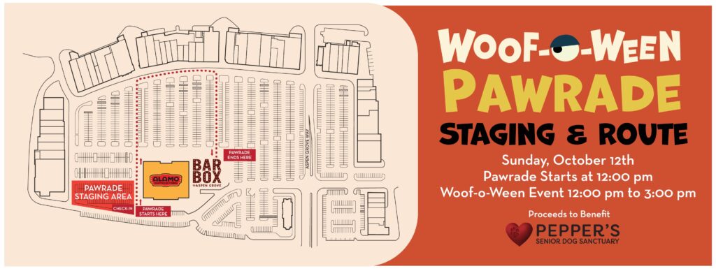 Kick off the day with our costumed walk around Aspen Grove to benefit Pepper’s Senior Dog Sanctuary. Entry is $10 for an individual dog costume, and $20 (2 – 5 dogs in your entry), with proceeds supporting the amazing work of our local nonprofit. Whether you walk your pup or push/pull them in a festive manual-powered float (no cars, sorry), you’ll be in the running for the $500 Best Parade Prize (winner announced during the costume contest).